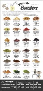 ナッツ、ドライフルーツ、シード、スパイスなど23種類のナチュラル食材を「ブースター」としてご用意。栄養豊富な、からだにうれしい食材を追加してブレンドすれば、その日の気分や体調に合った、あなただけの1杯にカスタマイズすることができます。多様なニーズに応え、定番系からスーパーフードまで幅広いラインナップ。